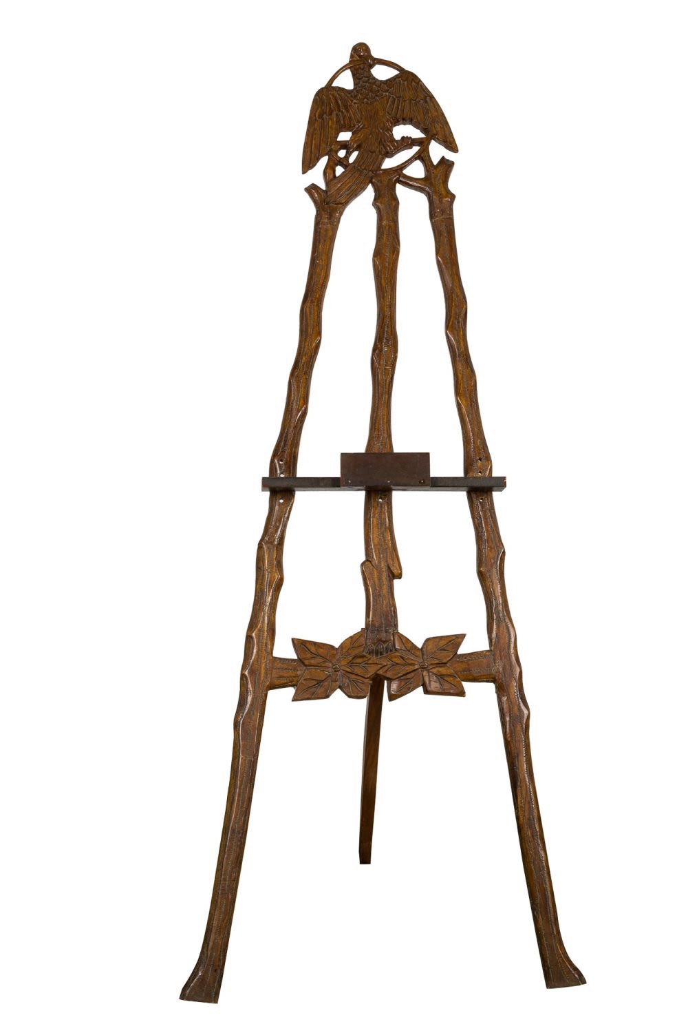 Cavalletto manifattura veneta in legno tinto a noce scolpito. Dimensione: 180 x 56. Anno XX secolo.